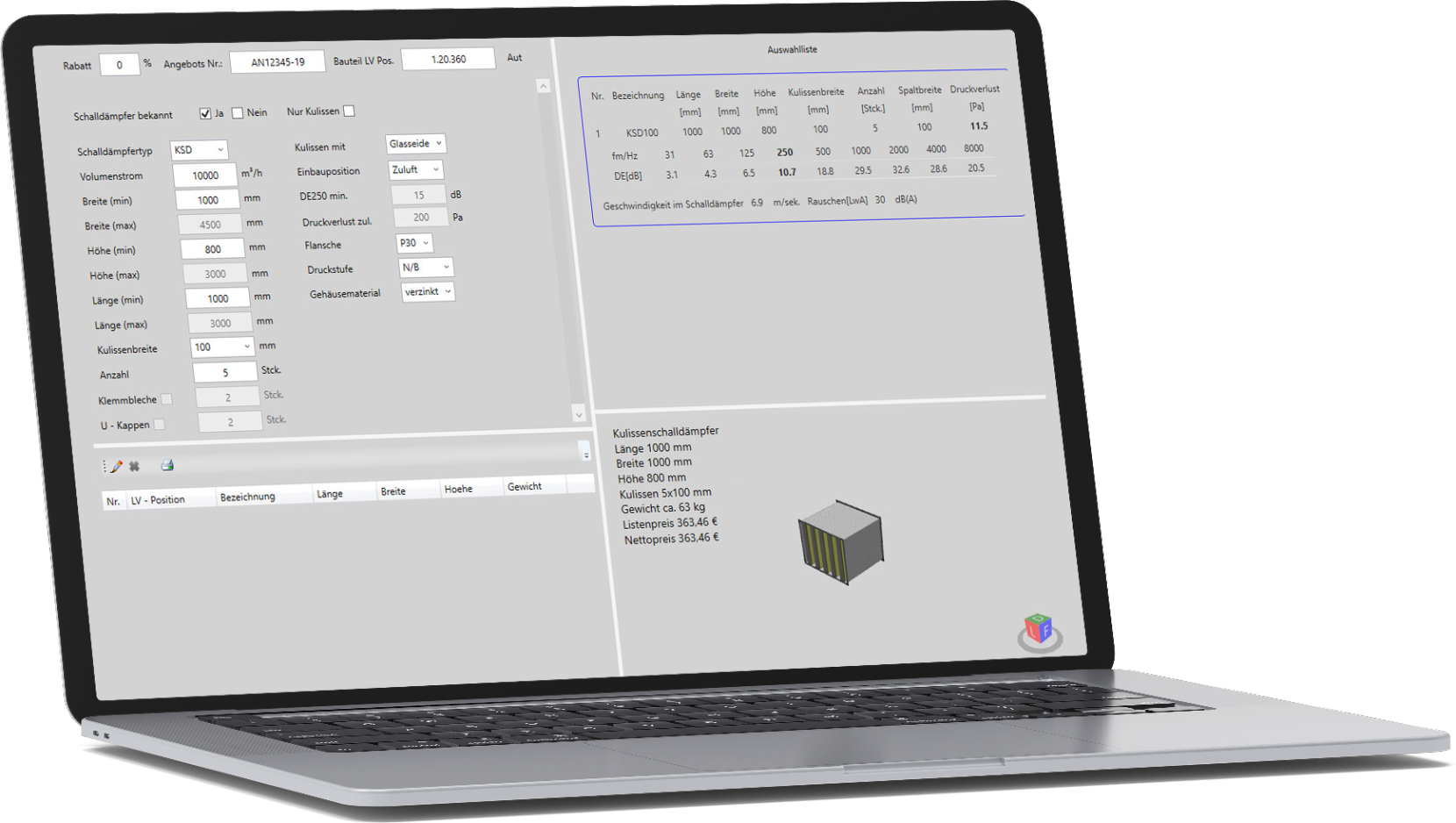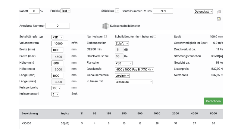 Nutzen Sie jetzt die Möglichkeit, mit unserem Konfigurator ganz einfach Schalldämpfer, Wetterschutzgitter, Klappen, Hauben, Dachdurchführungen und weitere Bauteile nach Ihren Anforderungen zu modifizieren. Neben einer präzisen technischen Auslegung erhalten Sie auch transparente Listenpreise aus unserem Programm. Mit Ihrem persönlichen Rabattcode können Sie schnell und unkompliziert individuelle Angebotspreise erhalten, um wertvolle Zeit zu sparen. Zudem bieten wir Ihnen umfassende Datenblätter zur Dokumentation Ihrer Anlagen, damit Sie stets den Überblick behalten. Probieren Sie es aus.