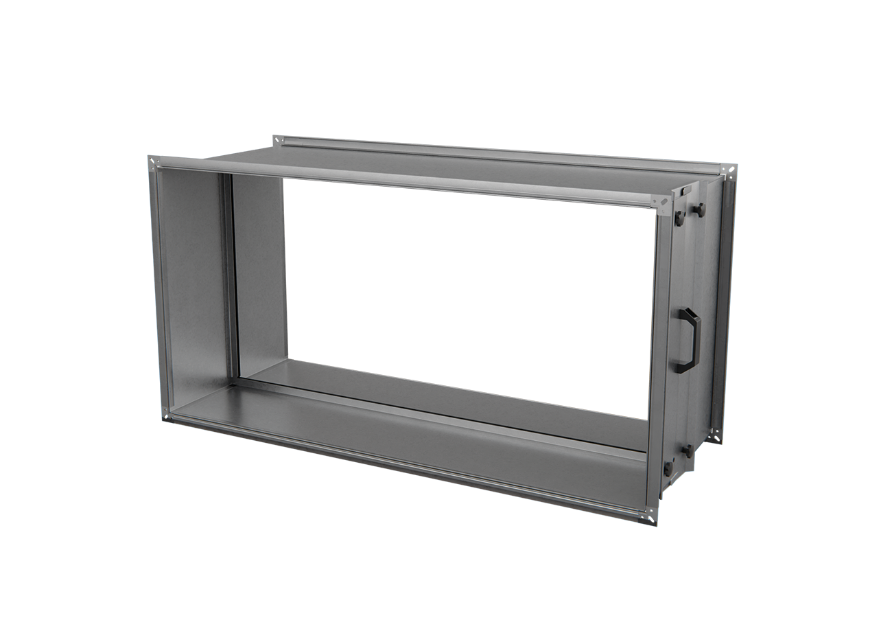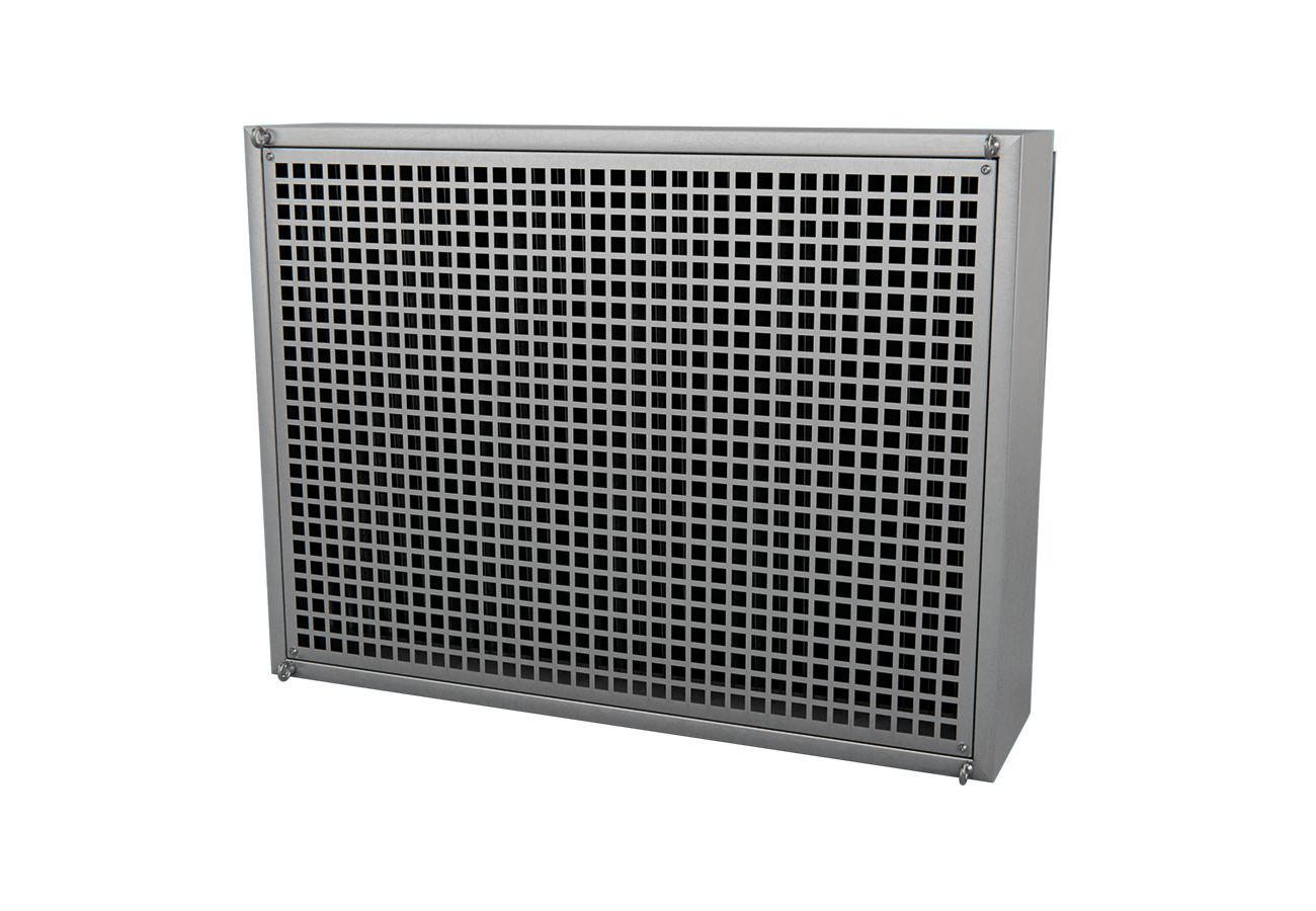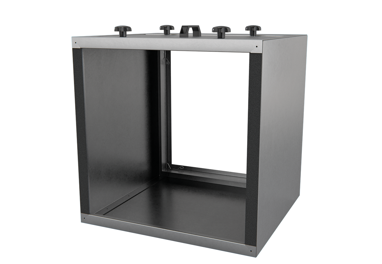 Filtergehäuse zur Aufnahme von Filtermatten und Metallgestrick (Fettfangfilter). Stabiles Kanalgehäuse mit seitlicher Revisionsöffnung, Sterngriffe und Handgriff zum schnellen Wechsel der Filtermatten.