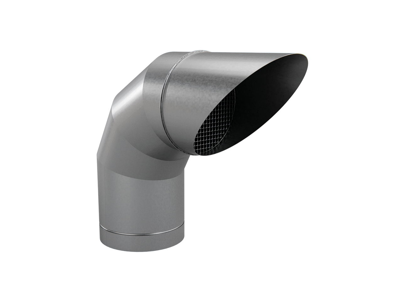 DL-Ansaug- und Ausblasbögen eignen sich ideal als wirtschaftliche Alternative für die Ansaugung von Außenluft sowie die sichere Ableitung der Fortluft.